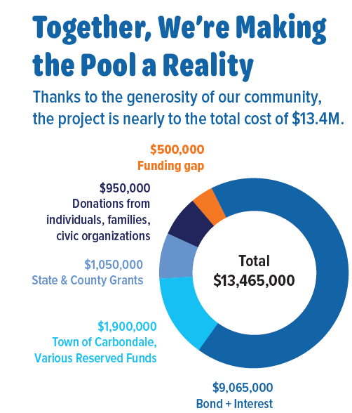 • $1,000+ donation to get your name on the recognition wall that will be at the entrance of the pool